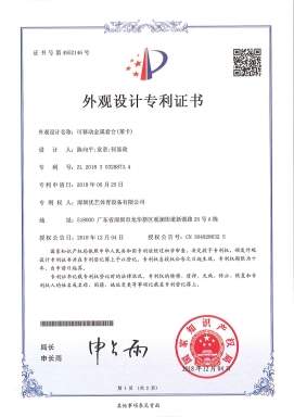 優藝體育產品擁有多項自主知識產權以下為精選專利證書展示
